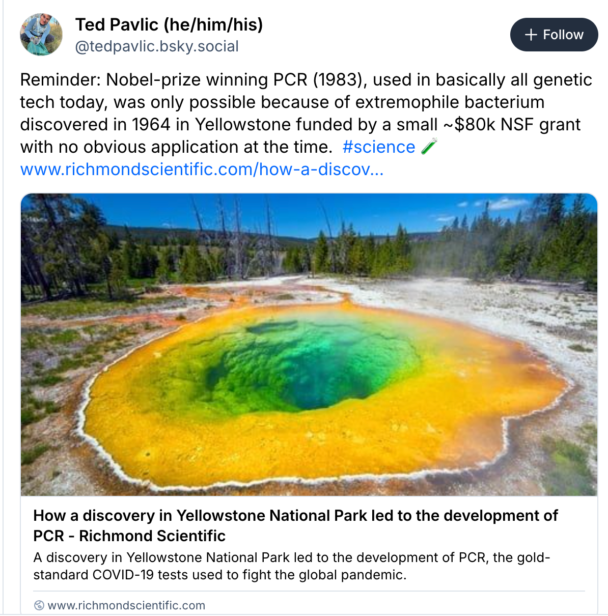 Last summer, we dealt with texts from friends closing down their labs or losing their lab jobs, and my wife grappled with the grief of having her incredibly successful STEM equity program–which funded science jobs and gave community college transfer students years of support, leading to both their own personal opportunities but also tremendous economic benefit to their communities–attacked by the highest authorities in our nation. I also saw this post and story, which has sat with me: